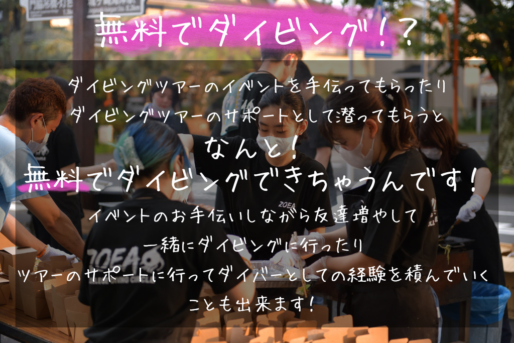 ・ツアーのイベントのお手伝いをするとダイビング招待券がもらえます