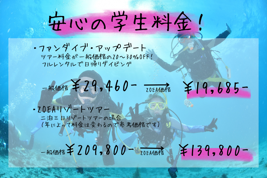 学生応援プログラム満載で、あなたに合った充実のダイビングライフを!