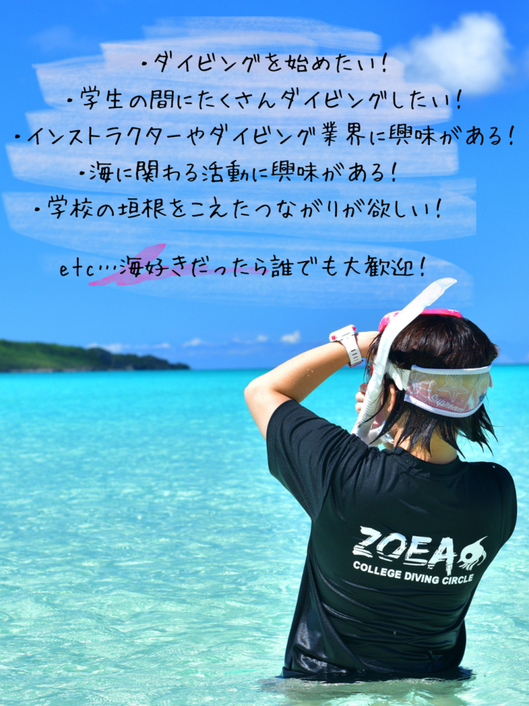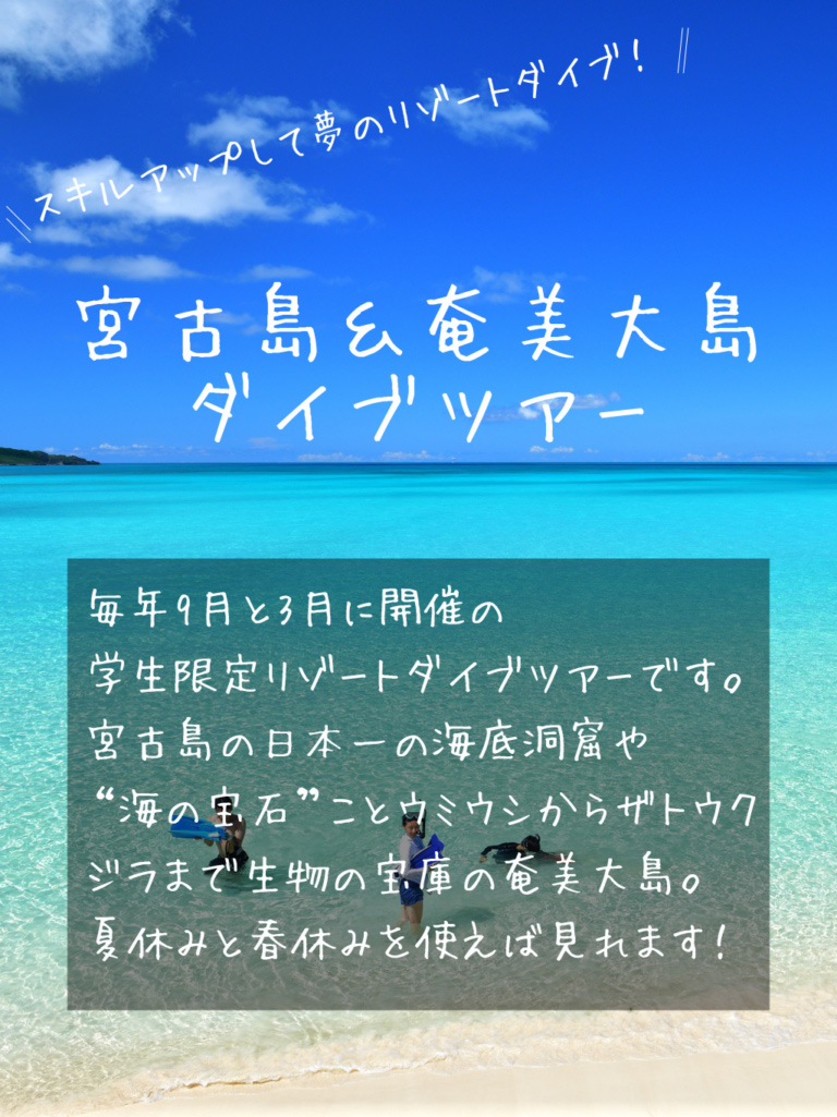 学生ダイバーの方が気軽に参加でき、社会に出る前に貴重な経験を積めるサークルです